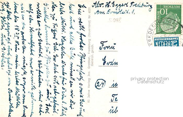 73142753 alte Postkarte Fredeburg Schmallenberg postalisch gelaufen Erhaltung siehe scans [NatalD47] KatCode: 11110005958040