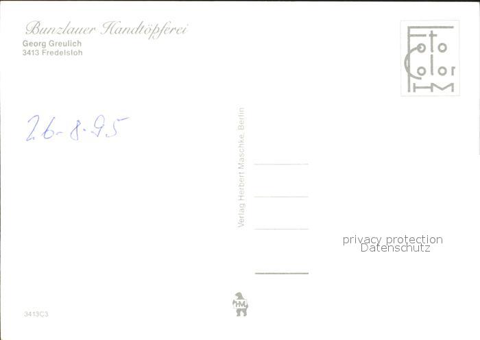 72375240 Fredelsloh Bunzlauer Handtoepferei Georg Greulich postalisch nicht gelaufen Erhaltung siehe scans KatCode: 11110003155009