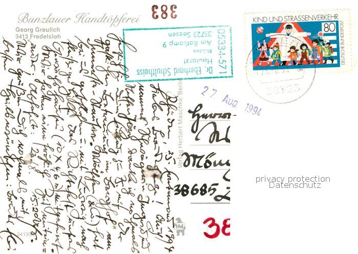 72990581 alte Postkarte Fredelsloh Bunzlauer Handtoepferei Georg Greulich postalisch gelaufen Erhaltung siehe scans [WerneD78] KatCode: 11110003155009