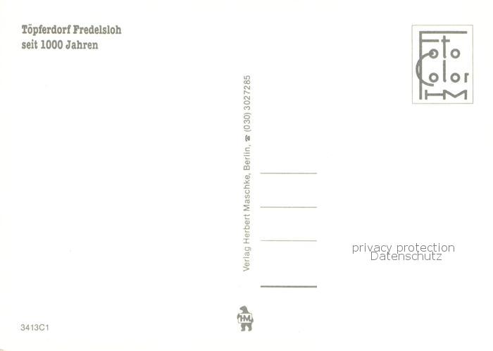 73763020 Fredelsloh Toepferdorf seit 1000 Jahren Kunsthandwerk Bunzlauer Handtoepferei Hotel Restaurant Jaegerhof Pfeffermuehle postalisch nicht gelaufen Erhaltung siehe scans [FriedD77] KatCode: 11110003155009