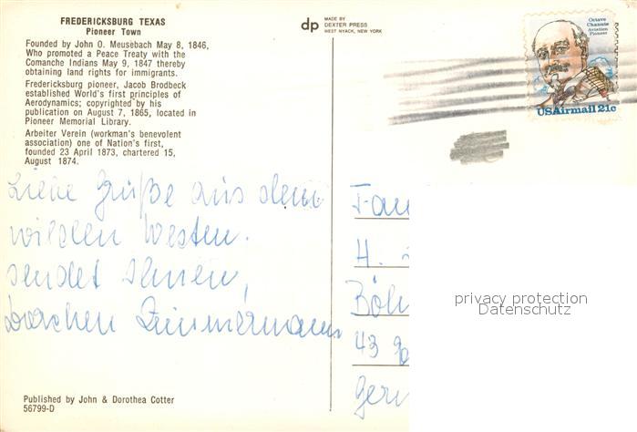 73229673 old postcard Fredericksburg Texas Main Street postalisch gelaufen Erhaltung siehe scans [NatalD47] KatCode: 14140460000000