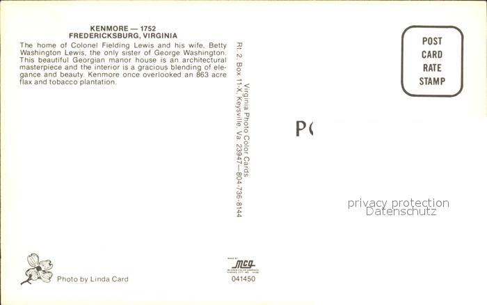 72341603 Fredericksburg Virginia Kemmore Villa postalisch nicht gelaufen Erhaltung siehe scans KatCode: 14140490000000