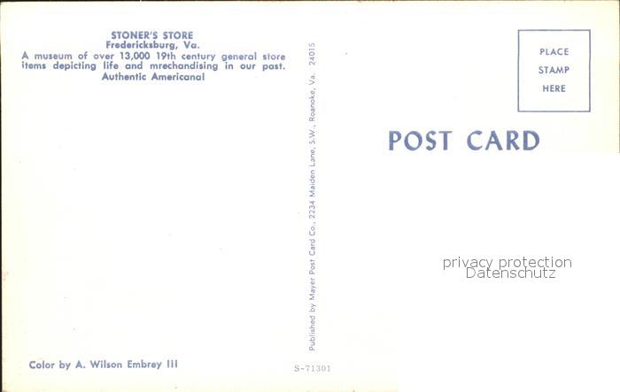 71955824 Fredericksburg Virginia Stoner`s Store postalisch nicht gelaufen Erhaltung siehe scans KatCode: 14140490000000