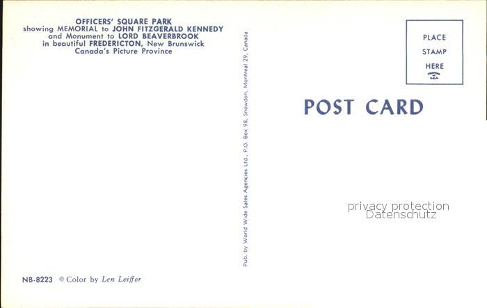 Fredericton Officer Square Park Memorial Fitzgerald Kennedy Lord Beaverbrook postalisch nicht gelaufen Erhaltung siehe scans