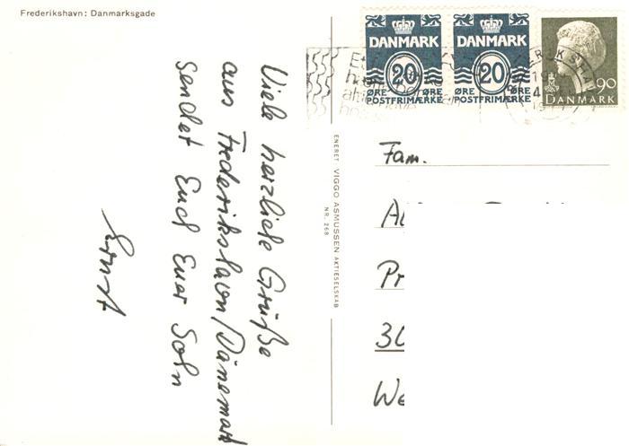 old postcard Frederikshavn DK Danmarksgade postalisch gelaufen Erhaltung siehe scans [FriedD77]