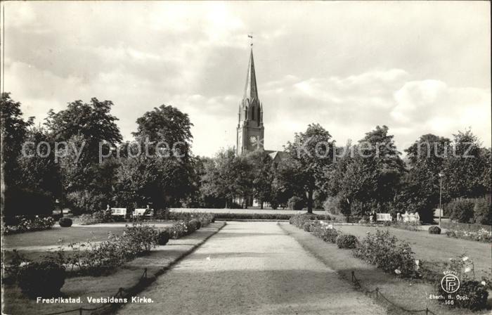 old postcard Fredrikstad Vestsidens Kirke postalisch gelaufen Erhaltung siehe scans