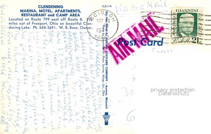 72840987 old postcard Freeport Ohio Marina Motel Clendening postalisch gelaufen Erhaltung siehe scans [NatalD47] KatCode: 14140370000000