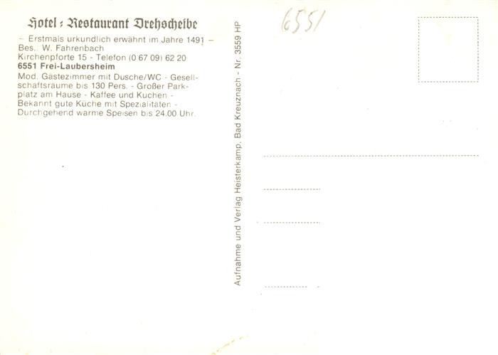 73896981 Frei-Laubersheim Hotel Restaurant Drehscheibe Gastraeume postalisch nicht gelaufen Erhaltung siehe scans [FriedD77] KatCode: 11110007133031