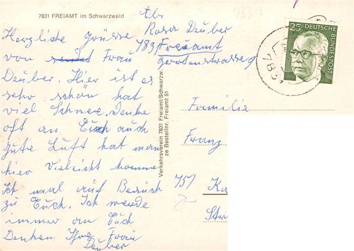 73931668 alte Postkarte Freiamt Emmendingen BW mit Ortsteilen Keppenbach Brettental Mussbach Reichenbach postalisch gelaufen Erhaltung siehe scans [WerneD78] KatCode: 11110008316054