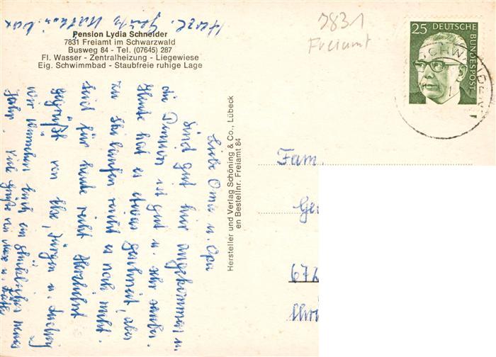 73931604 alte Postkarte Freiamt Emmendingen BW Pension Lydia Schneider Gastrum Parkt Schwimmbad postalisch gelaufen Erhaltung siehe scans [WerneD78] KatCode: 11110008316054