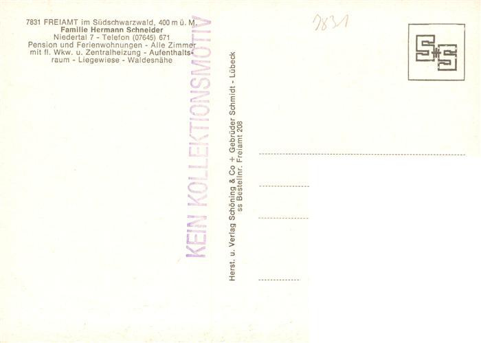 73931613 Freiamt Emmendingen BW Pension Schneider postalisch nicht gelaufen Erhaltung siehe scans [WerneD78] KatCode: 11110008316054