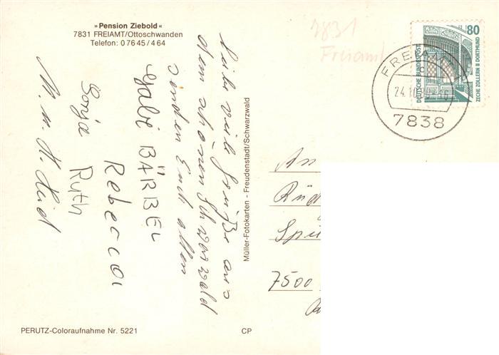 73931660 alte Postkarte Freiamt Emmendingen BW Pension Ziebold postalisch gelaufen Erhaltung siehe scans [WerneD78] KatCode: 11110008316054