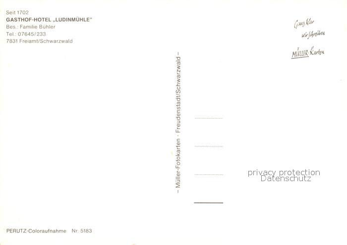 73323275 Freiamt Gasthof Hotel Ludinmuehle postalisch nicht gelaufen Erhaltung siehe scans [FriedD77] KatCode: 11110008316054