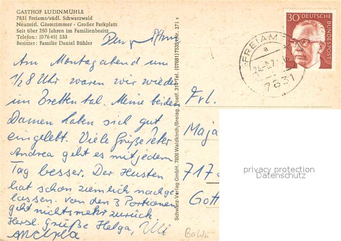 73707665 alte Postkarte Freiamt Gasthof Ludinmuehle postalisch gelaufen Erhaltung siehe scans [WerneD78] KatCode: 11110008316054