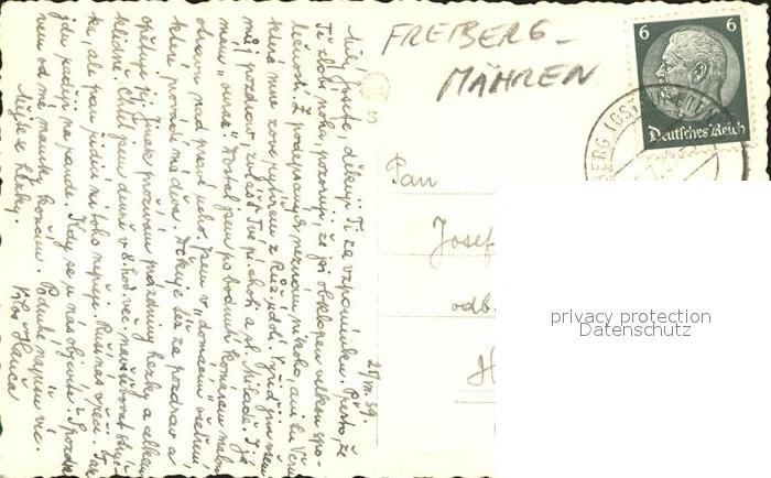 32337325 old postcard Freiberg Maehren Pribor Teilansicht postalisch gelaufen Erhaltung siehe scans KatCode: 11520
