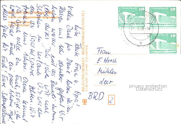 72081235 alte Postkarte Freiberg Sachsen 800 Jahr Feier Frauen Kloeppelzirkel Bergakademie postalisch gelaufen Erhaltung siehe scans KatCode: 11110014177150