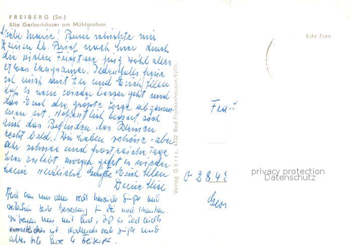 73071596 alte Postkarte Freiberg Sachsen Aalte Gerberhaeuser am Muehlgraben postalisch gelaufen Erhaltung siehe scans [WerneD78] KatCode: 11110014177150