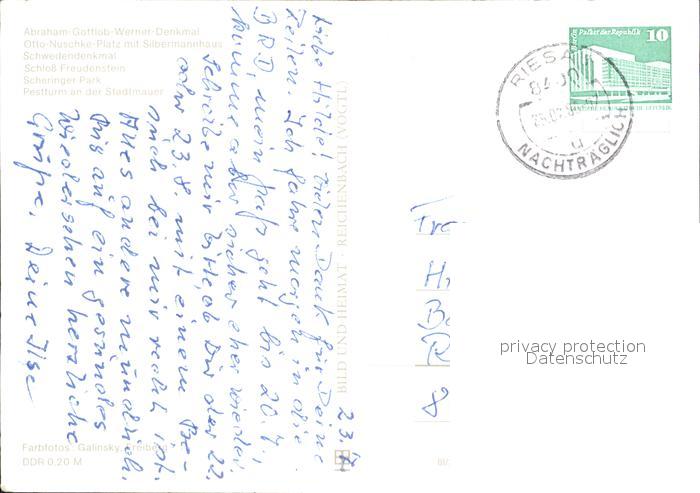 72320147 alte Postkarte Freiberg Sachsen Abraham-Gottlob-Werner Denkmal Schloss Freudenstein postalisch gelaufen Erhaltung siehe scans KatCode: 11110014177150