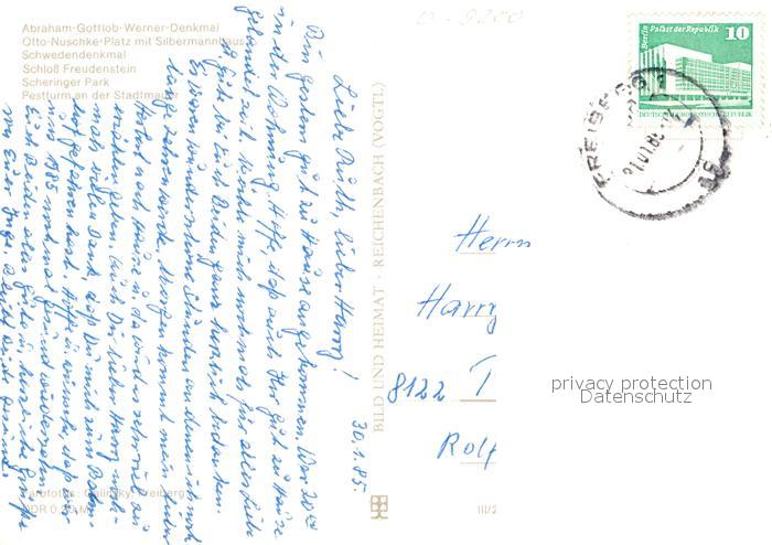 73030046 alte Postkarte Freiberg Sachsen Abraham Gottlob Werner Denkmal Schwedendenkmal Schloss postalisch gelaufen Erhaltung siehe scans [KathaD81] KatCode: 11110014177150