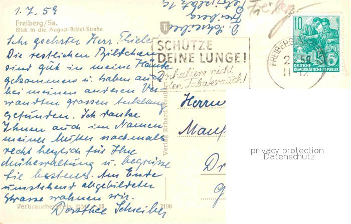 72634473 alte Postkarte Freiberg Sachsen August Bebel Strasse postalisch gelaufen Erhaltung siehe scans [KathaD79] KatCode: 11110014177150