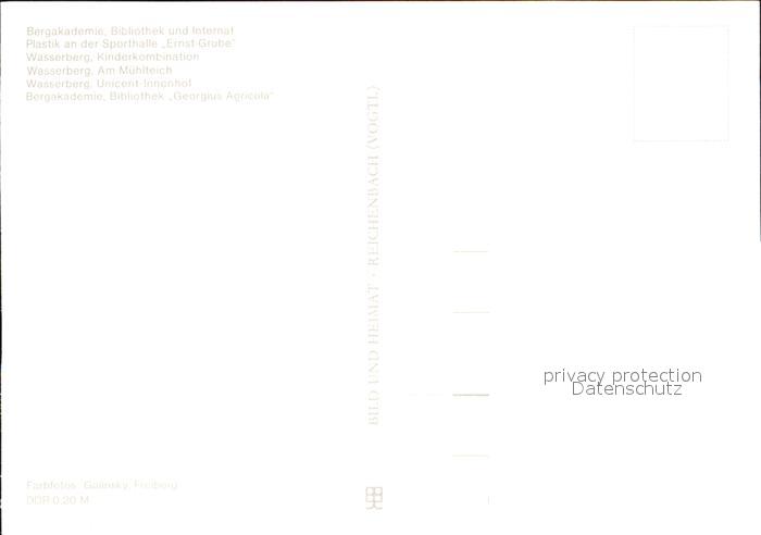 72518215 Freiberg Sachsen Bergakademie Plastik Sporthalle Ernst Grube Wasserberg Kinderkombination Muehlteich Unicent Innenhof postalisch nicht gelaufen Erhaltung siehe scans KatCode: 11110014177150