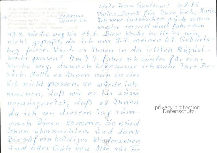72313565 Freiberg Sachsen Bergakademie Plastik Sporthalle Wasserberg Kinderkombinat Am Muehlteich Unicent Innenhof Bibliothek Georgius Agricola postalisch nicht gelaufen Erhaltung siehe scans KatCode: 11110014177150