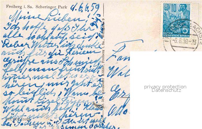 72643813 alte Postkarte Freiberg Sachsen Blick in den Scheringer Park postalisch gelaufen Erhaltung siehe scans [FriedD77] KatCode: 11110014177150