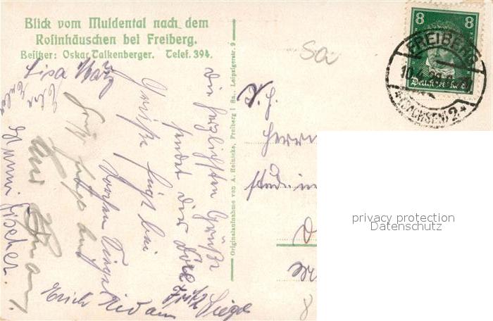 43017615 alte Postkarte Freiberg Sachsen Blick vom Muldental nach dem Rosinhaeuschen postalisch gelaufen Erhaltung siehe scans [FriedD77] KatCode: 11110014177150