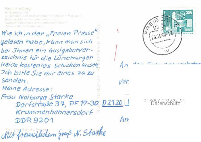 72849614 alte Postkarte Freiberg Sachsen Bobritzschtal Landschaftsschutzgebiet Grabentour postalisch gelaufen Erhaltung siehe scans [KathaD81] KatCode: 11110014177150