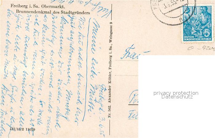 43346393 alte Postkarte Freiberg Sachsen Brunnendenkmal Stadtgruender postalisch gelaufen Erhaltung siehe scans [KathaD81] KatCode: 11110014177150