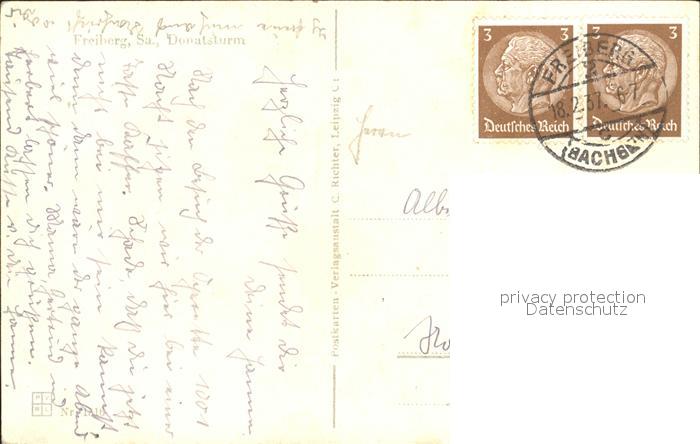 72114631 alte Postkarte Freiberg Sachsen Donatsturm postalisch gelaufen Erhaltung siehe scans KatCode: 11110014177150
