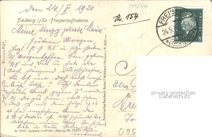 31910097 alte Postkarte Freiberg Sachsen Fliegeraufnahme postalisch gelaufen KatCode: 11110014177150