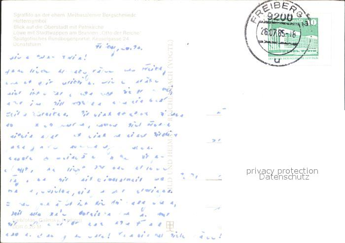 72290778 alte Postkarte Freiberg Sachsen Huettensymbol Loewe Stadtwappen Donatsturm postalisch gelaufen Erhaltung siehe scans KatCode: 11110014177150