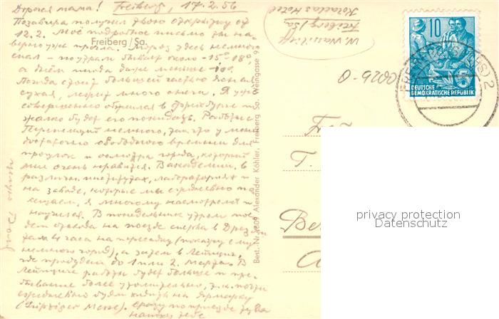 43346390 alte Postkarte Freiberg Sachsen Karl Marx Strasse Obermarkt August Bebel Strasse postalisch gelaufen Erhaltung siehe scans [KathaD81] KatCode: 11110014177150