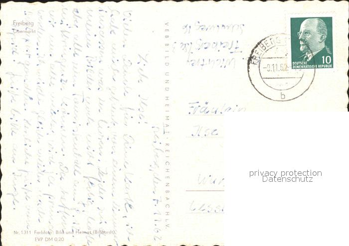 71952334 alte Postkarte Freiberg Sachsen Obermarkt postalisch gelaufen Erhaltung siehe scans KatCode: 11110014177150