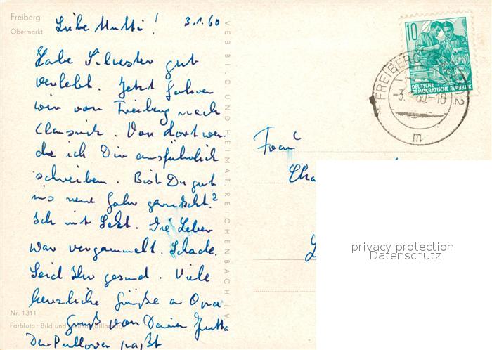 73125148 alte Postkarte Freiberg Sachsen Obermarkt postalisch gelaufen Erhaltung siehe scans [PaolaD17] KatCode: 11110014177150