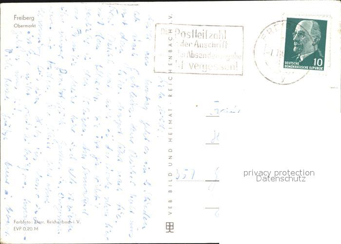 72599625 alte Postkarte Freiberg Sachsen Obermarkt Brunnendenkmal Otto der Reiche postalisch gelaufen Erhaltung siehe scans [FriedD77] KatCode: 11110014177150