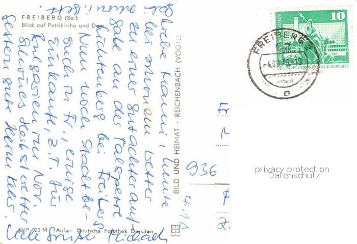 72643725 alte Postkarte Freiberg Sachsen Peterskirche und Dom postalisch gelaufen Erhaltung siehe scans [AndreD76] KatCode: 11110014177150