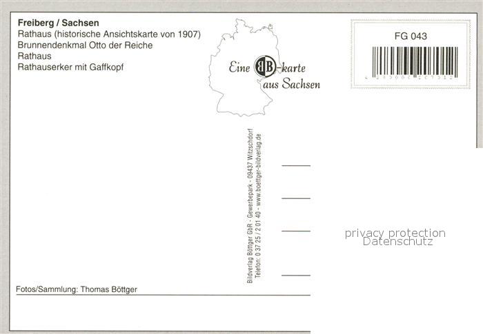 73199096 Freiberg Sachsen Rathaus Brunnendenkmal Otto der Reiche postalisch nicht gelaufen Erhaltung siehe scans [NatalD47] KatCode: 11110014177150