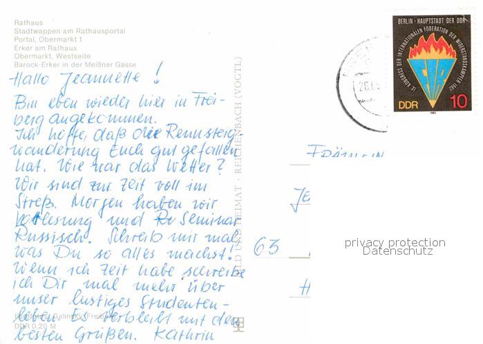 72629187 alte Postkarte Freiberg Sachsen Rathaus Portal Erker Obermarkt Barock Erker Meissner Gasse postalisch gelaufen Erhaltung siehe scans [WerneD78] KatCode: 11110014177150