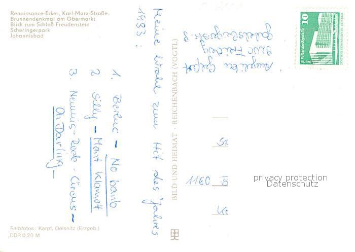 73030007 alte Postkarte Freiberg Sachsen Renaissance Erker Karl Marx Strasse Brunnendenkmal Obermarkt postalisch gelaufen Erhaltung siehe scans [KathaD81] KatCode: 11110014177150