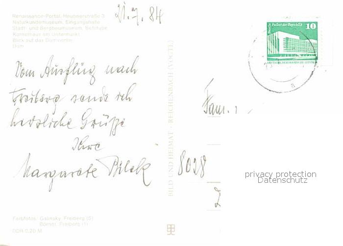 72626492 alte Postkarte Freiberg Sachsen Renaissance Portal Museum Kornerhaus Untermarkt Dom postalisch gelaufen Erhaltung siehe scans [FriedD77] KatCode: 11110014177150