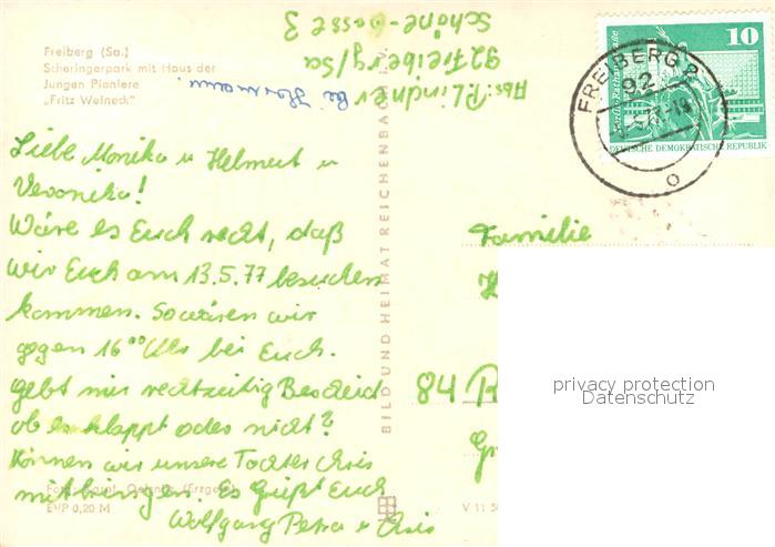 73718229 alte Postkarte Freiberg Sachsen Scheringerpark m. Haus d. Jungen Pioniere postalisch gelaufen Erhaltung siehe scans [LiesaD40] KatCode: 11110014177150