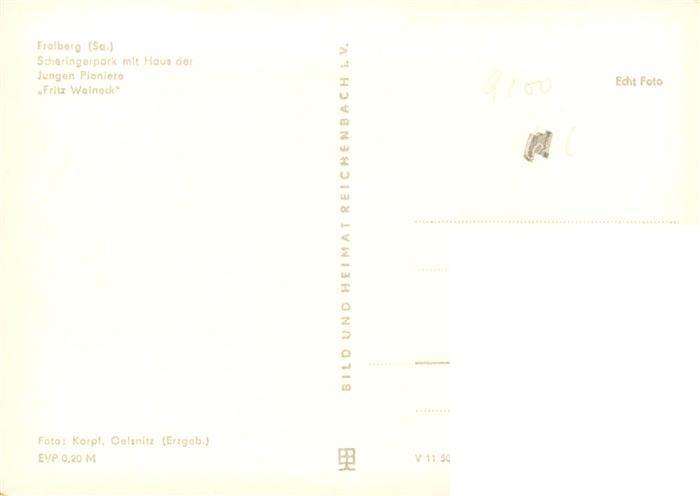 73907777 Freiberg Sachsen Scheringerpark mit Haus der Jungen Pioniere Fritz Weineck postalisch nicht gelaufen Erhaltung siehe scans [FriedD77] KatCode: 11110014177150