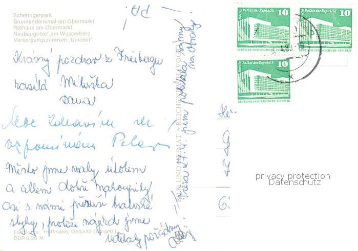 73171172 alte Postkarte Freiberg Sachsen Scheringerpark Rathaus Obermarkt postalisch gelaufen Erhaltung siehe scans [NatalD47] KatCode: 11110014177150