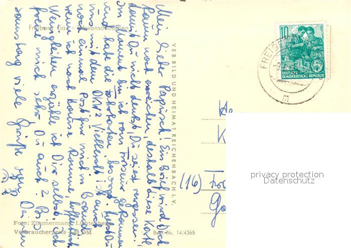 73044369 alte Postkarte Freiberg Sachsen Schwanenschloesschen postalisch gelaufen Erhaltung siehe scans [KathaD81] KatCode: 11110014177150