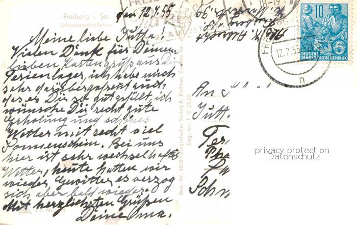 72643824 alte Postkarte Freiberg Sachsen Schwanenschloesschen Bootfahren postalisch gelaufen Erhaltung siehe scans [FriedD77] KatCode: 11110014177150