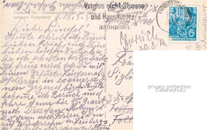 72642963 alte Postkarte Freiberg Sachsen Schwanschloesschen Kreuzteich postalisch gelaufen Erhaltung siehe scans [FriedD77] KatCode: 11110014177150