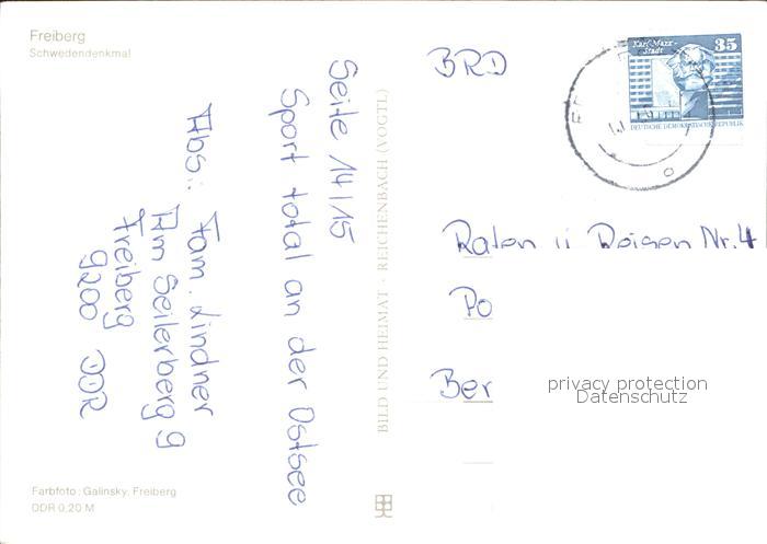 72393569 alte Postkarte Freiberg Sachsen Schwedendenkmal postalisch gelaufen Erhaltung siehe scans KatCode: 11110014177150