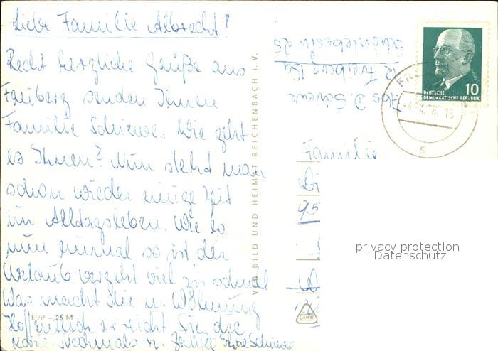 72473974 alte Postkarte Freiberg Sachsen Springbrunnen Scheringerpark Obermarkt Teilansicht Schwanschloesschen Donatsturm postalisch gelaufen Erhaltung siehe scans KatCode: 11110014177150